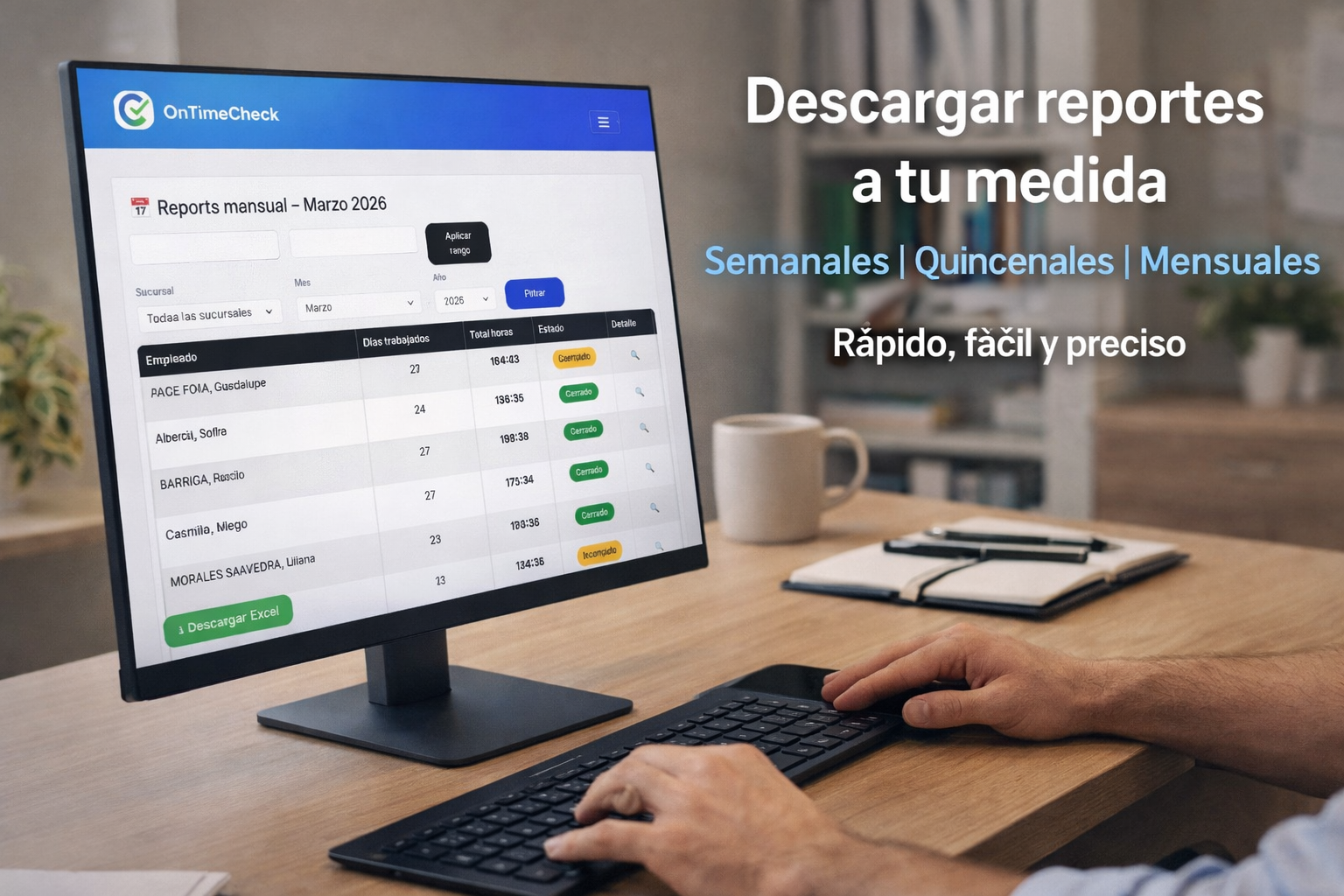 Visualizás horas trabajadas y reportes automáticamente.